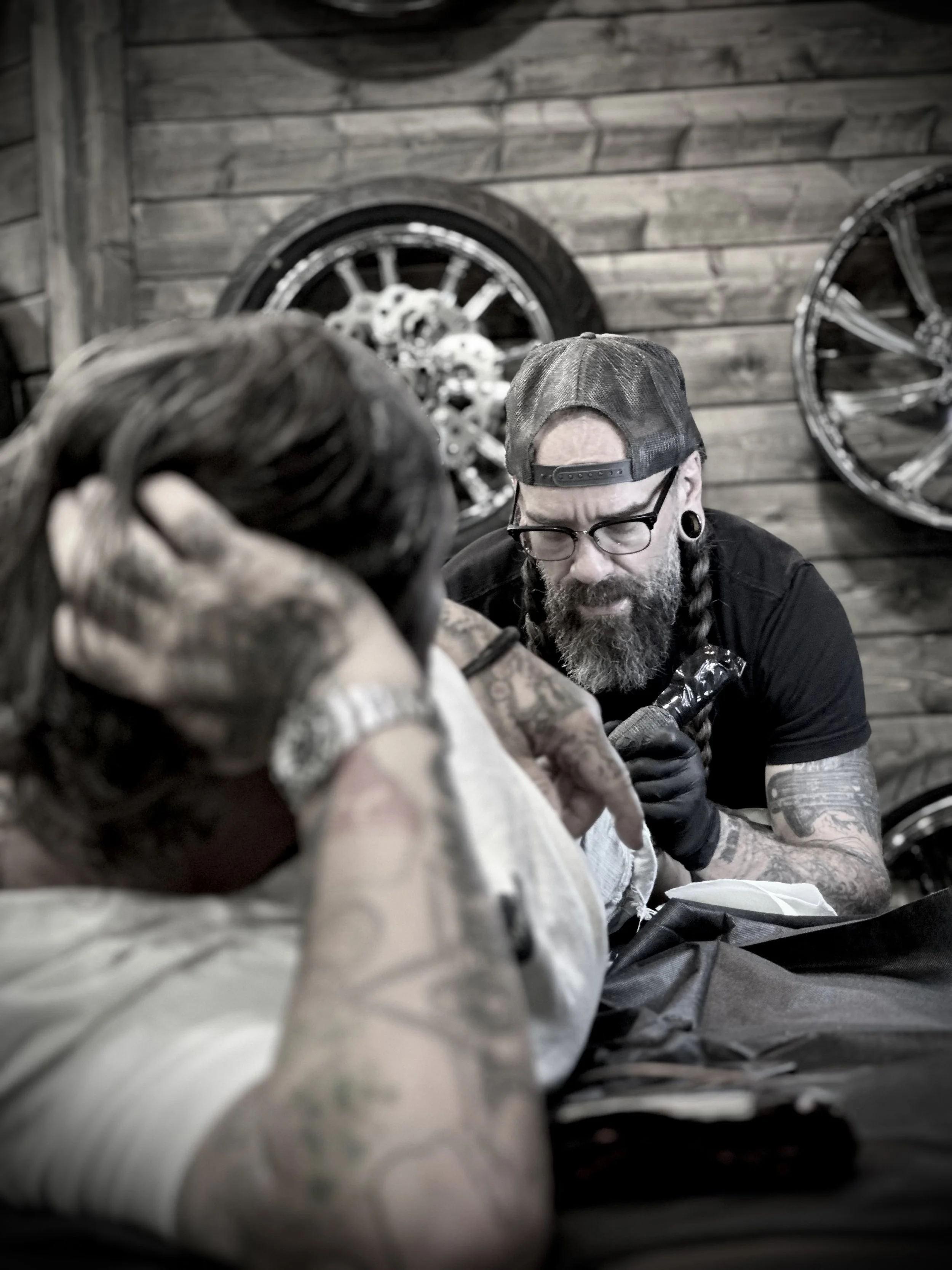 With over 20 years of experience, I specialize in portrait and illustrative tattooing, combining technical precision with artistic creativity. Tattooing is more than just my profession—it is a platform for artistic expression, meaningful connections, and personal freedom. My goal is to ensure that every client not only receives a high-quality tattoo but also enjoys a memorable and positive experience. Based in Atlanta, GA, I travel extensively throughout the year, primarily by motorcycle, to guest spots and tattoo conventions across the country. If you are interested in collaborating on a custom piece or looking for some of my flash, schedule an appointment!